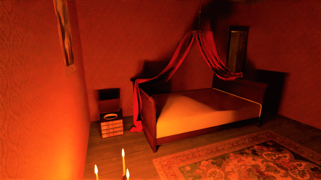 A la derecha están las dependencias del secretario de Su Excelencia, aquí he venido más de una vez: el despacho, con dos canapés de tafetán a rayas, sillas y cortinas a rayas encarnado y pajizo, un espejo, la chimenea, una alfombra de fondo encarnado…y la alcoba, a ver: una cama y una rinconera, otra caja de caoba para el orinal y otra alfombra más.